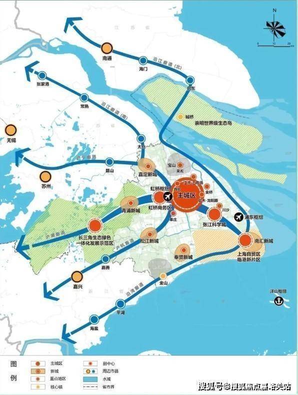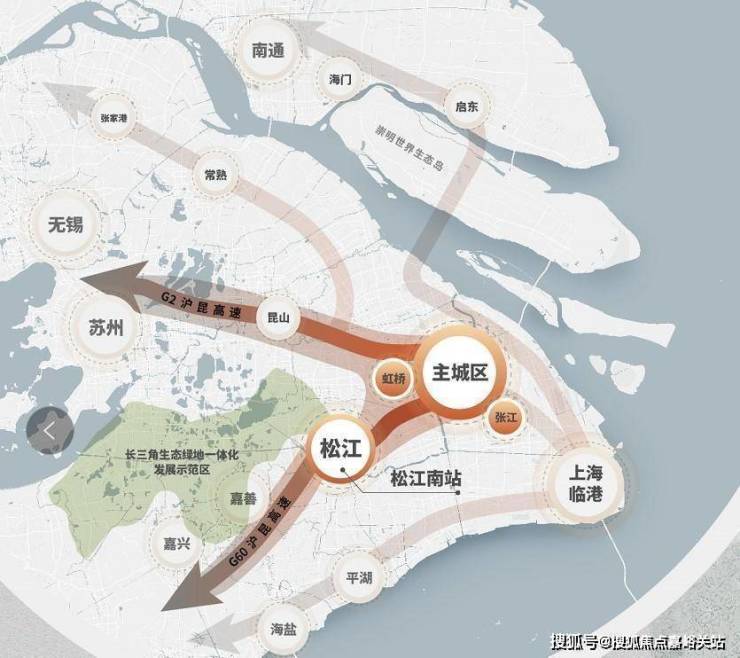 长三角一体化发展是国家级的重大战略,上海在长三角一体化发展中起着“稳定器”和 “主引擎”的作用,是引领长三角城市群发展的重要核心。而松江新城是长三角一体化 的独立综合性节点城市,是上海西南的门户,连接江浙皖沪三省一市,作为城市副中心,对于提升上海参与全球资源配置和竞争能力,起到引领带头作用。2021年9月1日上海市发布《上海市国土空间近期规划(2021-202年)》,《规划》立足长三角区域 一体化发展和上海大都市圈协同建设的视角,优化上海市域空间,强化国土生态安全底线,加快形成“中心辐射、两翼齐飞、新城发力、南北转型”的市域空间新格局。一是提升主城区能级和对外辐射能力;二是加快新城向独立的综合性节点城市目标发力;三 是推进东西两翼国家战略承载区的高质量建设,再次对五大新城赋予新的能级和城市发展的带头作用。政策的导向必然带动资金投入、经济发展、产业的规划及人口的流入。