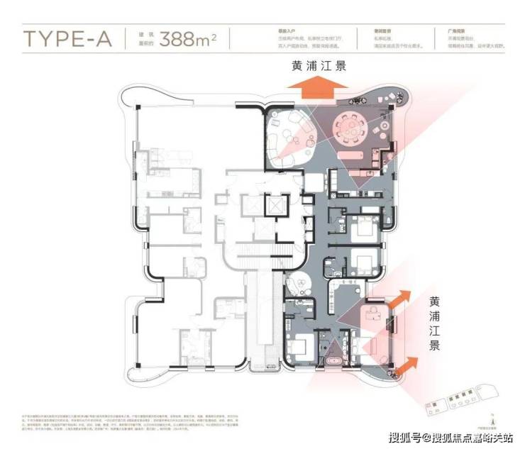 建面约388㎡户型,位于滨江首排、江景0遮挡。