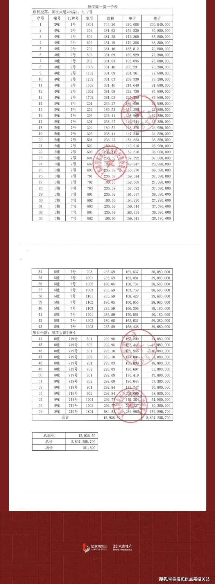 56套建面约180-240-388㎡江景大平层