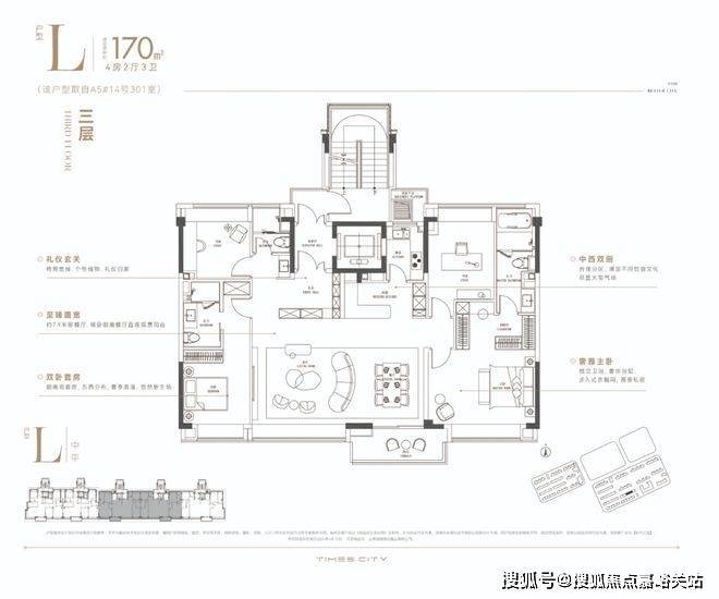 华润置地时代之城高层产品将百平上下的改善户型做出了轻奢级的居住体验,把约133㎡的改善四房做出了豪宅的尺度感。
