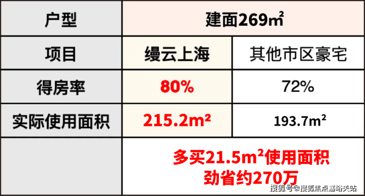 同样面积段,缦云上海多享受起码约21.4㎡的实际使用空间,这就是项目能做5房的根本原因。