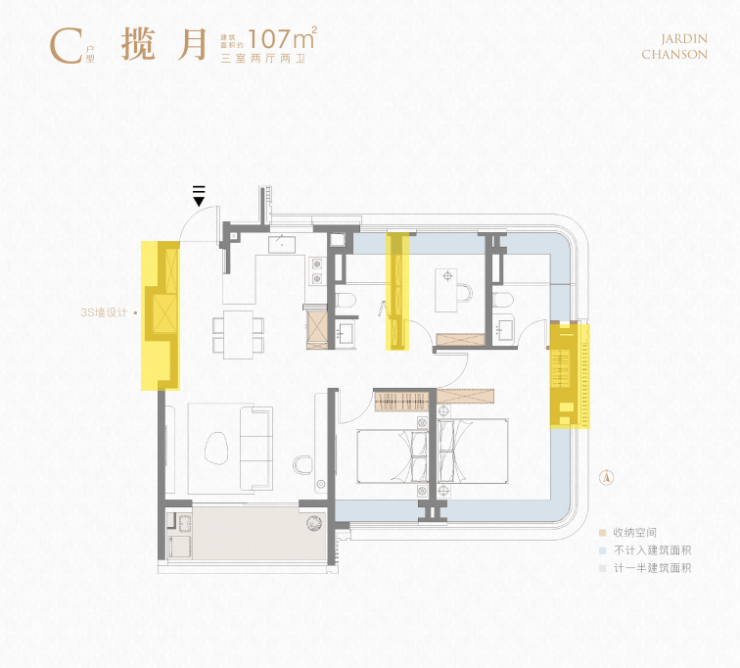这个问题,象屿也解决了:通过S墙的设计,预留的衣柜的凹龛,未来可供业主全屋定制做柜子使用,解决日常收纳问题。