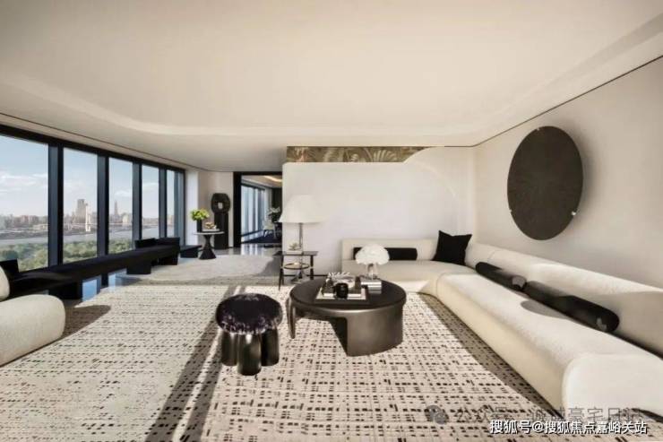·建面约240㎡边套,采用L型转角落地窗,打造了 270°环幕瞰江视野,无论身处客厅、餐厅,都能以不同角度眺望黄浦江的波光粼粼。