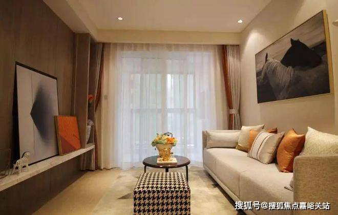 从户型图就能看到三开间朝南,看了样板间的实景更觉得舒适。客厅朝南的好处不用多说,白天即使不开灯,整个空间也很通透。82㎡有这样的客厅,非常不错。
