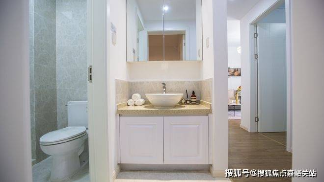 也正是因为一个卫生间,才能做出这样的尺度感。镜柜打开就是收纳空间,整体干湿分离,一边可以洗脸刷牙,一边可以上厕所,尽可能满足多人口使用的需求。即使早上也来得及,三口之家的使用绰绰有余。
