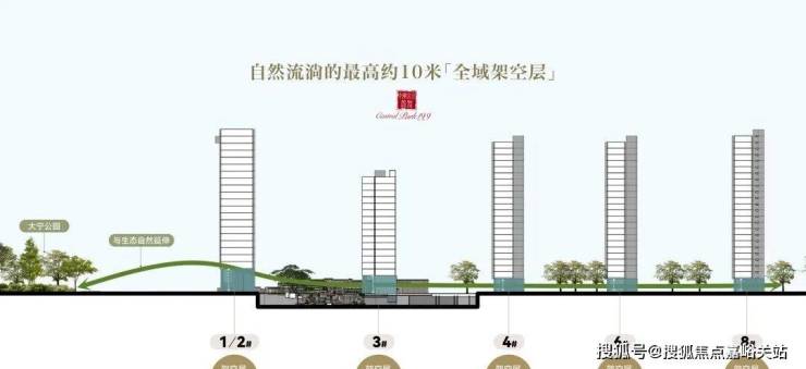 向内,项目更是以令人惊叹的魄力,打造了约6-10米超高层级全域架空设计。