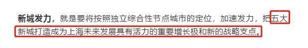 文章中指出,在十四五期间,上海五个新城要加速发力,按照独立综合性节点城市的定位,打造成为上海未来发展具有活力的重要增长极和新的战略支点。