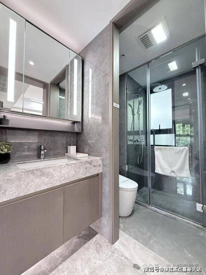 卫浴收纳系统:可抽拉龙头、收纳柜层板可变式设计、金属拉篮式设计、预置吹风机点位、270°镜、防雾镜、美颜灯等;保利光合上城售楼处电话4008569058☑️☑️