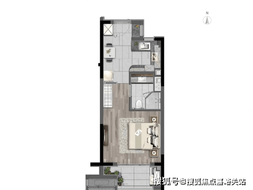 布局紧凑方正,客餐厨一体化,连接观景飘窗,功能齐全。总价 430 万起,中环内稀缺小户型,适配单身精英与新婚夫妇。