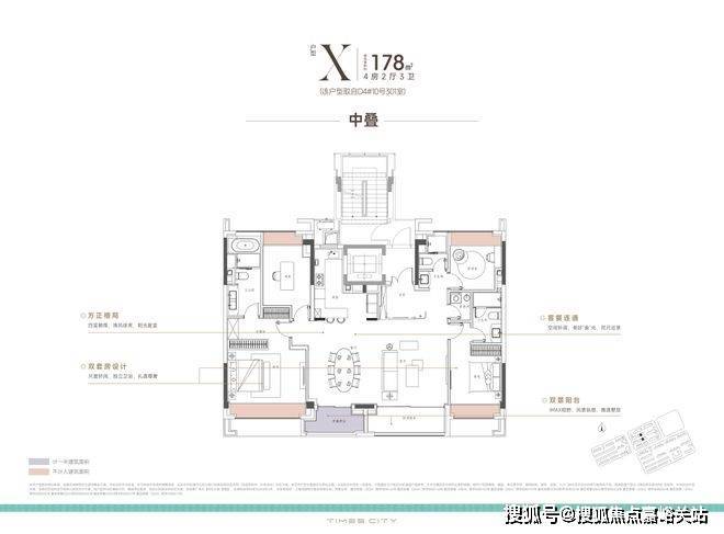 项目的中叠四开间朝南,超大IMAX的采光面,妥妥市区豪宅大平层的尺度感。