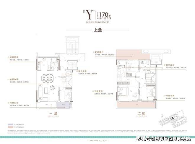 170m²上叠,南向双阳台+南北双露台:
