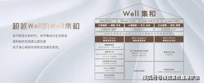 项目采用Well集和社区,通过规划健康高效空间、健康便捷服务、健康安全科技三大维度,将健康智能科技植入生活。