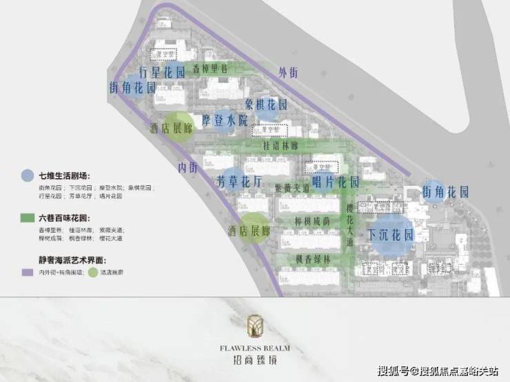 【招商臻境】精心规划了七维生活剧场,包括:街角花园、摩登水院、下沉花园等七重生活场景,营造四季分明、美景如画的精致水岸归家之路。