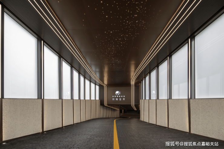 不仅如此,在地库坡道处,颇具仪式感的仿银河效果的星空顶造型,坡面铺设的马蹄石,星光熠熠款待业主归家,身份尊崇感不彰自显。