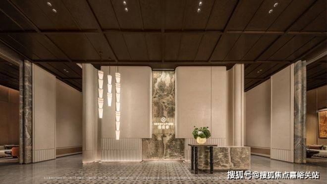 项目首层通过硬朗直线呼应柔和曲线勾勒,辅以温润石材与古铜色金属线条融合,打造东西方美学共融的艺术藏品。
