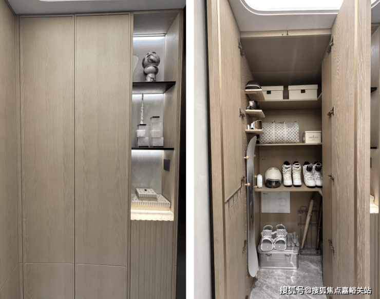 可以看到,中海不止是给业主提供了一个收纳空间而已,而是根据业主不同的摆放收纳需求,在窄柜中做了大小不一的隔断,以便满足不同的收纳需求,这就是在设计阶段, 将业主的生活需求前置,并充分考虑到了解决这些需求的答案。