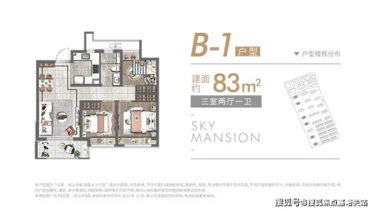 16层高层:建面约83㎡(三房两厅一卫)