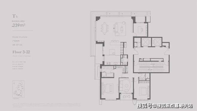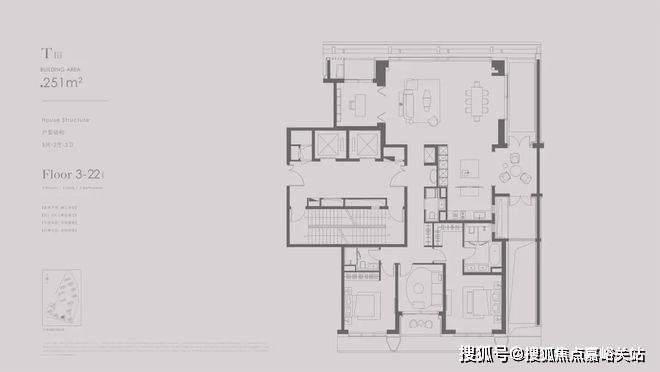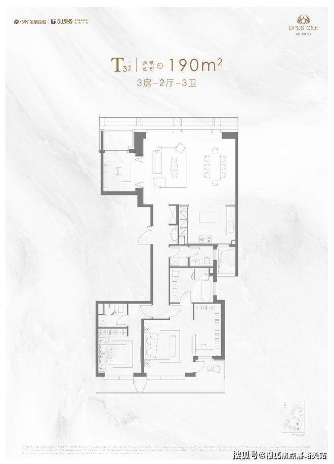 ⑥174m²客厅8.2米/奢侈三房/主卧开间5.7米/最小卧室约14m²
