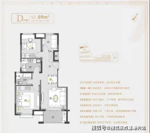 建面约78㎡2房1卫户型,做到了双开间朝南+南北通透+卧室带飘窗+动静分离,功能区划分、动线都非常清晰。