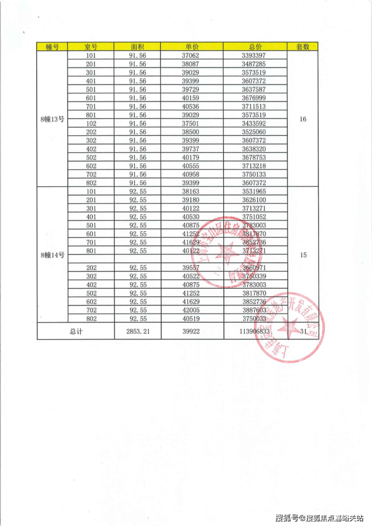 一房一价表: