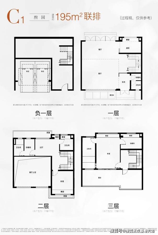 建面约195㎡的C1户型,尺度更加惊人,墅居体验堪称“庄园式”!