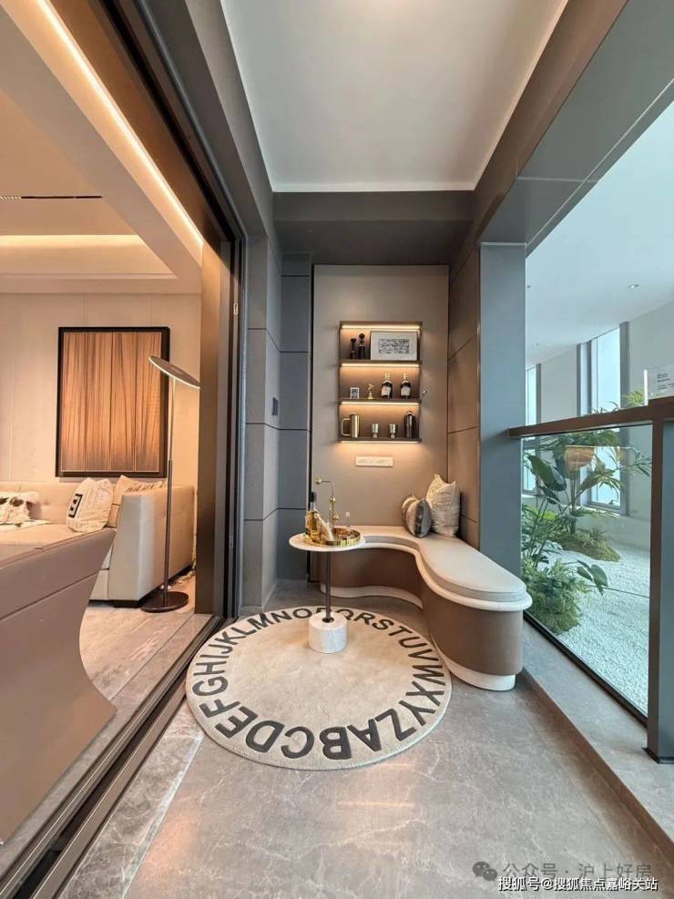 入户后,所有玄关柜均为交付标准,还精心配置了“除臭精灵”,下方更预留了扫地机器人的空间,为日常起居提供便利;像传统的豪宅三大件,项目采用大金品牌中央空调地暖两联供,以及格兰斯柯的新风。