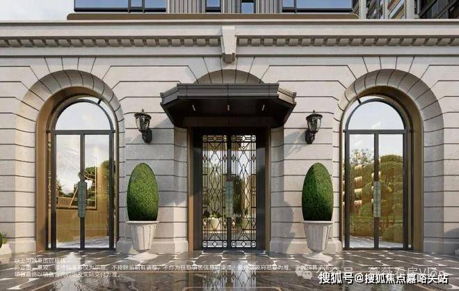 建筑立面通过明确的基座、主体与檐部层次,再现了经典新古典主义的庄重比例。