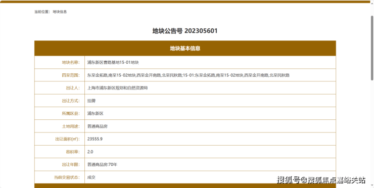项目基础信息【建发青云上】项目是2023年7月13日,联发+联发联合体以总价13.365亿元竞得的浦东新区曹路基地15-01地块,楼板价28369元/㎡,溢价率10%,房地联动价51500元/㎡,成交总价13.365亿!
