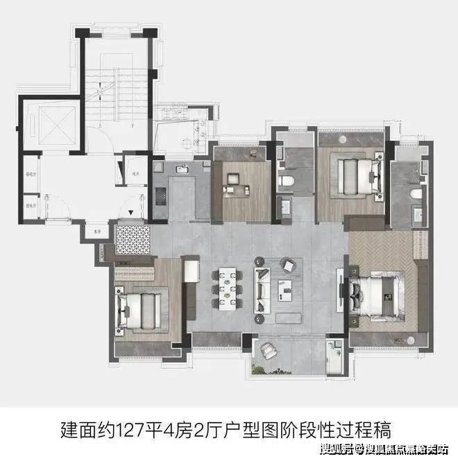 建面约127㎡直接进阶4房,功能性拉满,适配当下越来越多的二胎或三代同堂家庭.