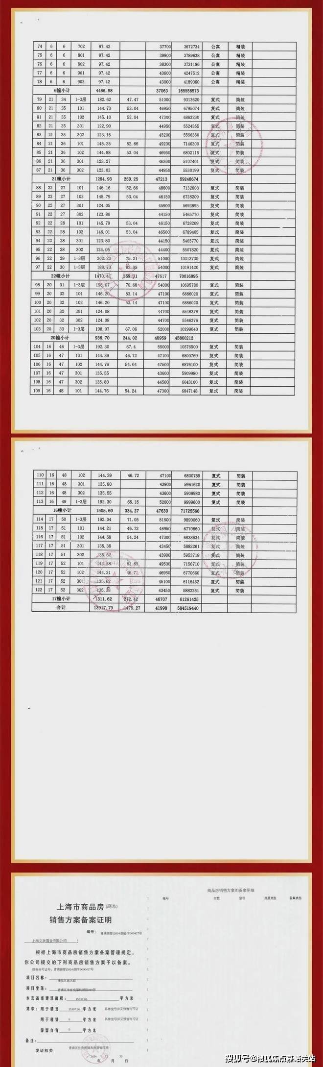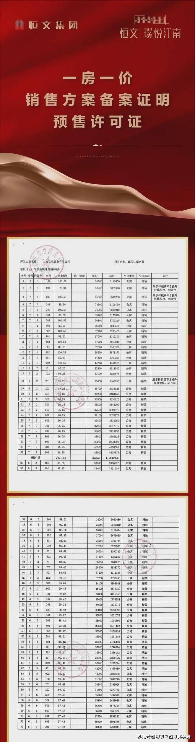 一房一价表: