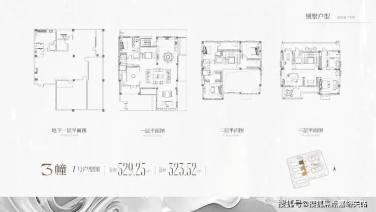 户型亮点针对高端人群需求, 通过 形态升级、功能分层带来空间舒适度和居住私密性的改善以及花园、露台、地下室的附赠, 突显尊享性,满足生活方式升级和身份认同感。