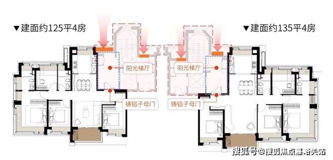 四房产品配备类一梯一户设计,以及市场罕见的阳光梯厅!