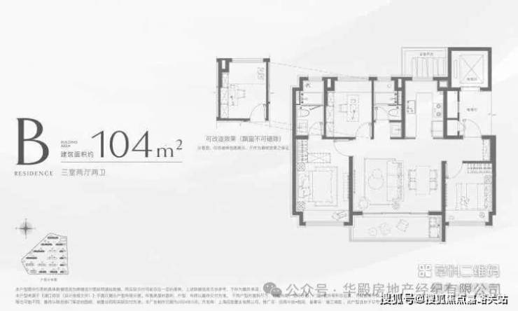 户型B| 建筑面积约104㎡3室2厅2卫