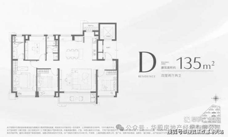户型D| 建筑面积约135㎡4室2厅2卫