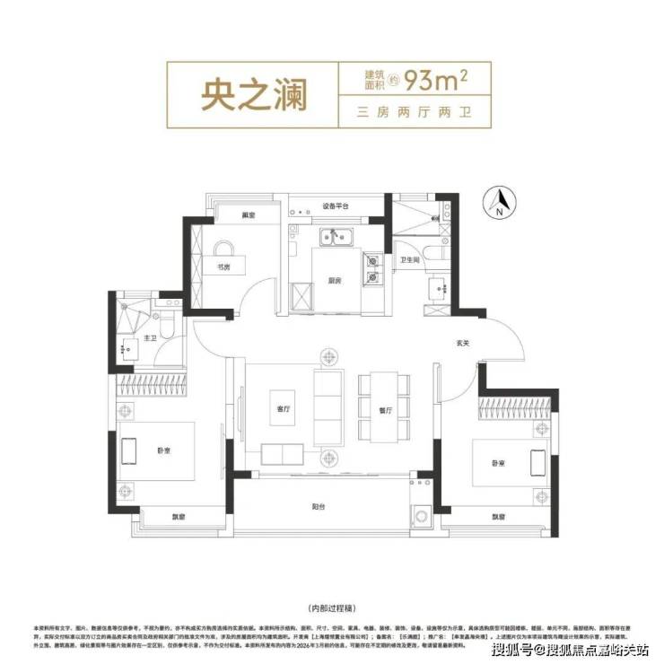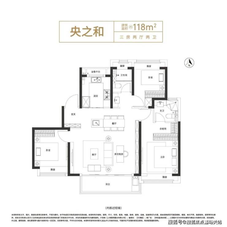 约11.3米南向三开间 ,拥享阳光, 约5米的横厅联动餐厅 ,形成“客餐一体”的互动空间,让不足百平的三房也能拥有大尺度的视觉享受。