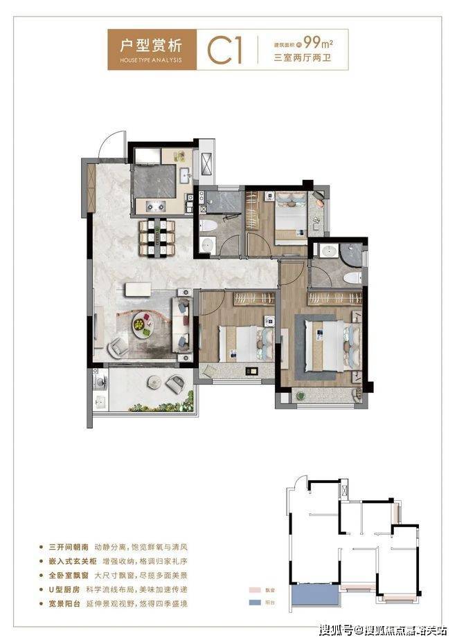 瞰景高层 / 73㎡二房一卫,85㎡、99㎡三房二卫