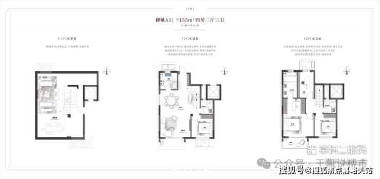 上叠:实现 2+1房2卫 设计,长辈房位于三层、配卫生间,规避上下楼梯的麻烦。 南向阳台与餐客厅一线贯通 ,享受充沛阳光。 四层豪华主卧、北侧连接露台, 空中露台及顶层阳光平台,可量身定制成一方幸福天地。