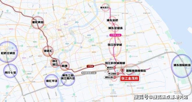 距离项目最近的21号线申江南路站到张江金茂府仅约888米,目前已经在建,该条线路为浦东南北走向的交通动脉,将高效打通外高桥、金桥、张江等产业节点,也将为张江金茂府引流更多高端产业人群!