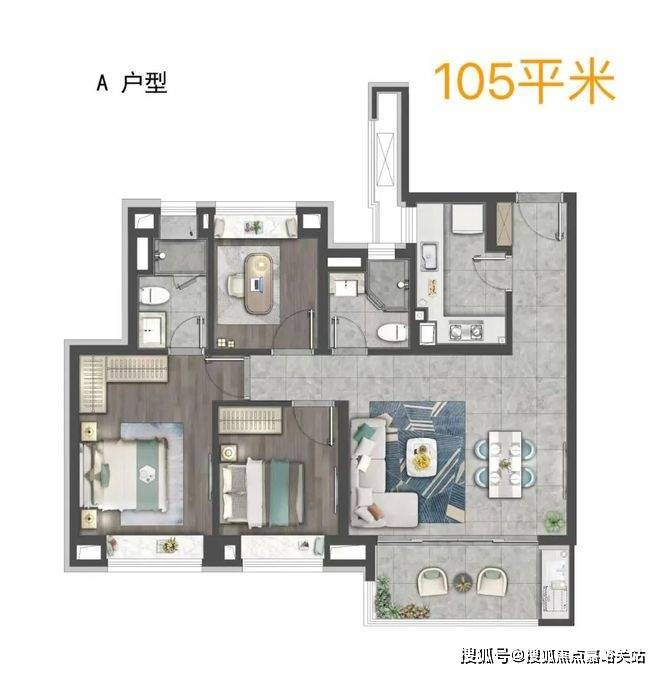 建面约105㎡王炸3房2卫