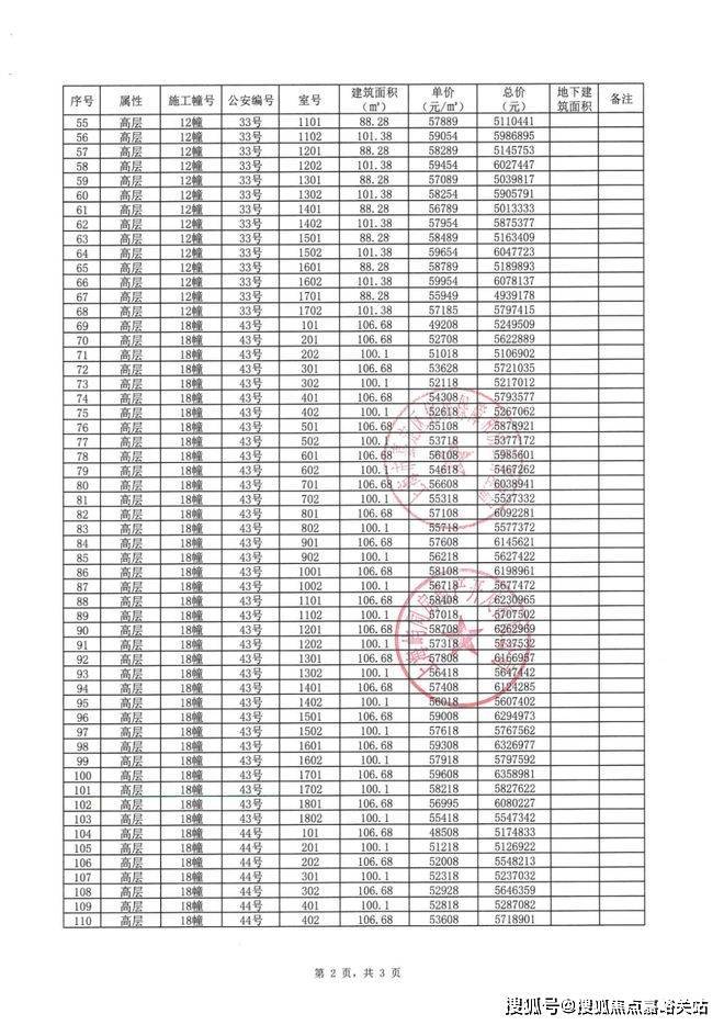 以下为项目完整一房一价表