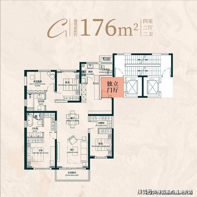 建面约176㎡4房2厅2卫:
