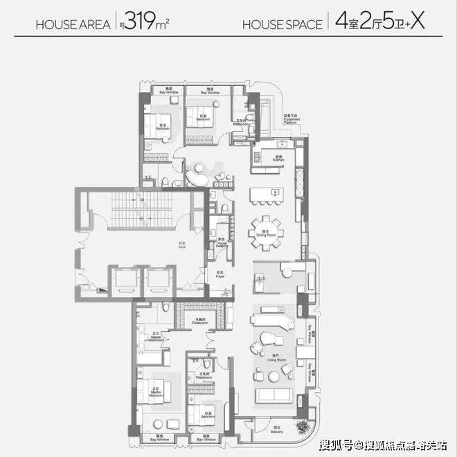 ▼ 建面约319㎡4房2厅5卫