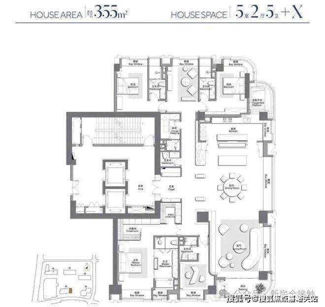▼ 建面约355㎡5房2厅5卫+X