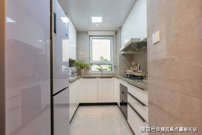 高层在交付方面,厨房为采用三移门交付,地柜和吊柜采用定制橱柜,台面为石英石,油烟机和灶台采用老板品牌,摩恩的大单槽水槽、厨房龙头;