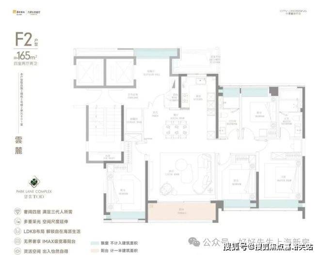 而建面约165㎡的"公园头排全景舱"更是项目的扛鼎之作,采用四开间朝南的极致布局,LDKB一体化+IMAX级宽厅的设计打破了传统空间界限。超大阳台、全屋飘窗带来了约270°环幕视野,将公园盛景尽收眼底。