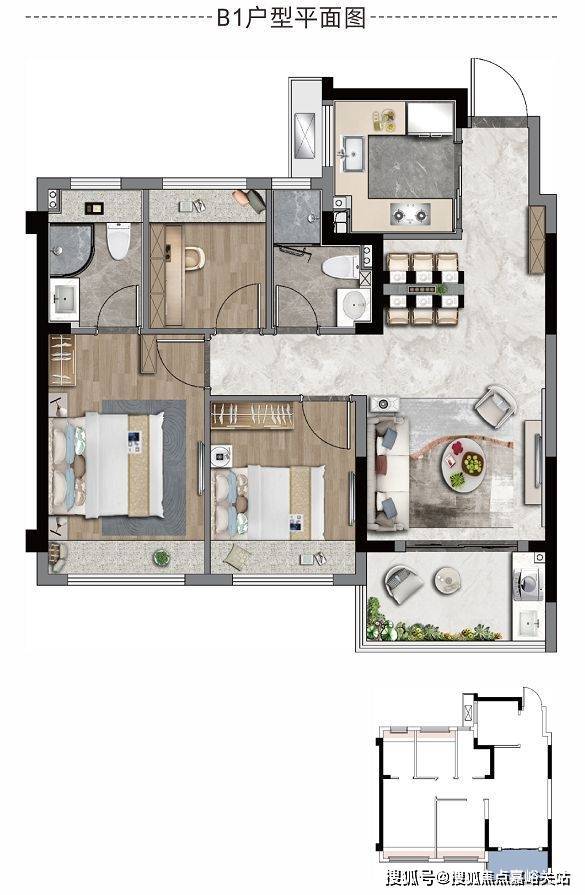 约85㎡三室两厅两卫