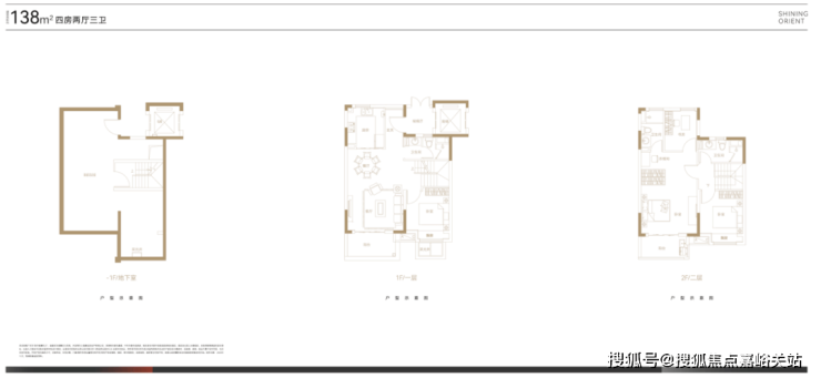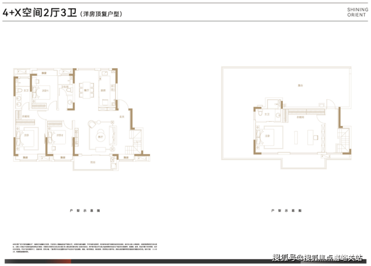 叠墅总高四层,设计了邻里空间,单元门设计也是非常的大气。上叠125㎡三房两厅三卫,顶楼闷顶层等可以拓展空间;下叠140㎡四房两厅三卫,另有超宽裕的赠送面积。