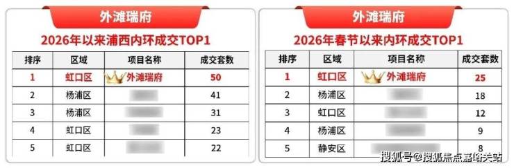 截至上周五,外滩瑞府已稳居 春节后上海内环内销量TOP1 ;