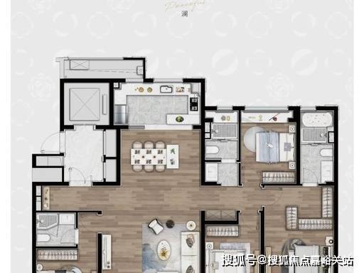 主力户型二:168㎡四房两厅三卫(楼王改善)