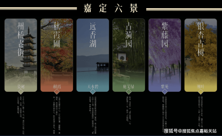建筑们围合出的中心花园中,州桥老街、秋霞圃、远香湖、古猗园、紫藤园、银杏古树等嘉定6景被南山地产提炼、转译,形成了具有在地文化特色的6大景观主题空间。